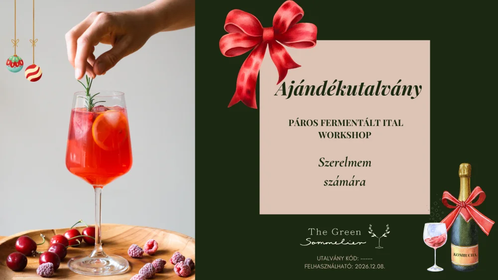 Az ajándékutalvány egy éven keresztül felhasználható bármely The Green Sommelier workshopra. Hogy pár példát említsek: kombucha készítés, gyömbérkovász workshop, ízpárosítások masterclass. A workshopon mindenki starterpacket és italokat vihet haza, hogy rögtön belevághassanak a fermentálás művészetébe!